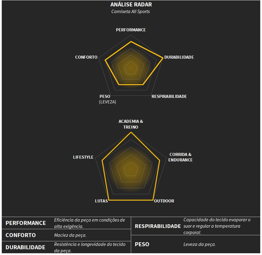 Projetada para acompanhar seus movimentos com máxima leveza e durabilidade, a All Sports traz uma gramatura intermediária de 145g/m², o que garante maior resistência à abrasão, inclusive em esportes de contato, como lutas e práticas com quimonos.